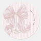 Sticker Rond Pink Bow and Stripes Baby Shower