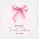 Sticker Rond Pink Bow Coquette Script Sweet 16 Party Blush