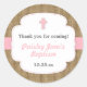 Sticker Rond Pink Burlap croix fille baptême de baptême en fave