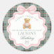 Sticker Rond Pink Coquette Bow Bear Tartan Birthday Favor