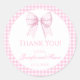 Sticker Rond Pink en vichy bow bébé fille douche merci
