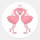 Sticker Rond Pink Flamingo Tropical Hawaiian Beach Wedding