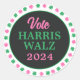 Sticker Rond Pink Green Clover 2024 Vote Harris Walz