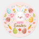 Sticker Rond Pink Happy Easter BunnySpring Floral