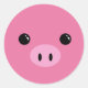Sticker Rond Pink Piglet mignon Visage animal Design