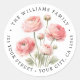 De belles étiquettes d'adresse de retour avec un tableau de fleurs de ranunculus rose avec des feuilles verts, et votre adresse de retour dans une police serif élégante.