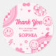 Sticker Rond Pink Retro Super fête d'anniversaire