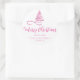 Sticker Rond Pink Ribbon Tree Joyeux Noël Script