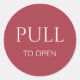 Simple minimalist dark pink and white pull to open sticker for your small business door store.