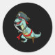 Sticker Rond Pirate Dinosaure T Rex Funny Tyrannosaurus Hallowe