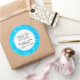 Anniversaire / événement merci autocollants avec une photo d'eau de piscine bleu clair, avec des reflets chatoyants. Un cercle blanc superposé avec votre texte à l'intérieur.