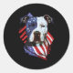 Illustration frappante montrant un Pitbull américain aux côtés d'un drapeau américain, incarnant la fierté et la loyauté nationales.