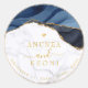 PixDezines navy blue watercolor agate with gold veins accented with faux gold heart, a wedding stickers with DIY calligraphy over white marble (removable).