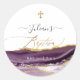 PixDezines Baptism sticker, avec aquarelle agate dans les veines violet aubergine et faux or, un accent croisé avec script de calligraphie de luxe. Tous les éléments modifiables et amovibles. Copyright © 2023 PixDezines™. Tous droits réservés.