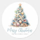 Autocollant rond Christmas Tree Beach Classic. Répandez une ambiance de vacances balnéaire avec cet autocollant rond unique représentant un arbre de Noël fait de coquillages et d'étoiles de mer. L'arbre, surmonté d'une étoile de mer, est conçu dans des tons apaisants de bleu et de vert, rappelant le corail sous-marin, et est posé sur une base sablonneuse. Cet autocollant de style aquarelle rustique est parfait pour tous ceux qui vivent dans des endroits tropicaux comme la Floride, Hawaï ou les Bahamas, ou pour tous ceux qui aiment l'ambiance balnéaire. Le mélange de polices simples et de typographie script ajoute une touche d'élégance, tout en gardant les choses décontractées. Idéal pour ajouter une touche festive et côtière à vos enveloppes de cartes de vacances, vos cadeaux de fête ou tout autre