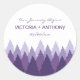 Ces autocollants sont parfaits pour tout couple qui planifie une célébration mariage rustique des bois. Le design présente une gamme de forêts ombragées dans les tons violets sur un arrière - plan blanc avec une formulation modifiable coordonnée couleur. Le design simple peut être personnalisé pour convenir à votre événement spécial et sera la faveur parfaite pour toute fête à thème rustique, y compris : douches nuptiales, fiançailles, wedding showers, fêtes d'anniversaire et bien plus encore.