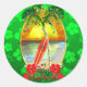 Mele Kalikimaka, Hawaiian pour Joyeux Noël. Plage d'art avec un palmier décoré de lumières et d'ornements de Noël.