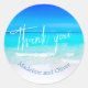 Bleu océan et la scène de plage moderne tropical mariage personnalisé moderne. Changez facilement les informations pour votre propre Une gamme de belles couleurs bleues avec un "Merci" blanc.