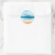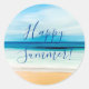 Nautique, plage côtière thème tropical. Un ciel bleu clair, la mer et une plage de sable. Écriture manuscrite moderne et tendance et texte : Happy Summer! Lettres bleues.