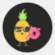 Sticker Rond Plages de Dabbing Pineappy Flamant rose Float Aloh