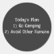 Sticker Rond Plan d'aujourd'hui : 1) Aller Camping 2) Évitez le