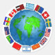 Illustration de la terre avec des drapeaux du monde qui tournent autour du bord extérieur représentant la diversité, les voyages, etc. Image disponible sur divers cadeaux et produits.