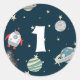 Sticker Rond Planètes spatiales et roquette Galaxie Premier ann