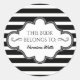 Noir et blanc moderne, élégante plaque étiquette autocollants - arrière - plan rayé noir et blanc. Au centre se trouve un emblème élégant avec des bords et des courbes de charbon de bois. Lit 'Ce Livre Appartient à' en lettrage élégant. Nom dans le script en dessous. Cliquez sur l'option Personnaliser pour modifier les couleurs, la taille et les styles de police du texte. Changez même les bandes blanches en changeant la couleur arrière - plan.
