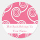 Le motif tourbillonnante sur un arrière - plan rose donne un look unique et design à votre bibliothèque.Ne remplacez jamais un livre en ajoutant "ce livre appartient à" des étiquettes.Les plaques personnalisées peuvent être changées en tout autre étiquette personnel pour C.Ds, cadeaux, étiquettes de boîte pour enfants, étiquette de boîte à lunch, etc en changeant la matière du texte.Si vous voulez de l'aide avec cela contactez-moi et je le faire pour vous!