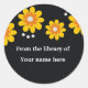 Sticker Rond Plaques personnalisées noires - Fleurs jaunes