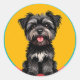 Sticker Rond Playful Black And Gray Terrier Puppy Portrait