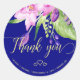 Printemps, été ou automne mariage de automne élégant merci autocollant modèle sur un arrière - plan bleu marine (couleur modifiable) avec un grand bouquet de rose rousse, prune, et lilas fleurs pourpres et fleurs avec feuilles vert sauge et un script de calligraphie or chic. ++++++++++++++++++++++Convient pour le jardin extérieur de jardin élégant rustique mariage d'été ou d'autres occasions.