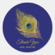 Sticker Rond Plume de paon doré Merci sur fond bleu marine