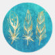 Sticker Rond Plumes bleu et or turquoise