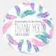 Envoyez votre Merci mariage avec ce joli, moderne, peint à la main plumes motif avec élégant, unique coloré rose pastel, violet, turquoise boho chic peint à la main plumes d'aquarelle motif. Parfait pour le printemps, l'été et le thème bohème ou mariage en plein air. Customiser avec les noms du marié et de la mariée et la date du mariage