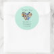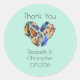 Mariage personnalisé merci autocollant. Customisez avec le nom de la mariée et du marié et la date de leur mariage. Joli aquarelle romantique de plumes en forme de coeur. Les couleurs sont jaune, orange, bleu, vert et marron. Certains ont des rayures, des points, des motifs tribaux et d'autres arrangements décoratifs créatifs uniques. Placez-vous sur un arrière - plan vert menthe.