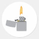 Ce design magnifiquement détaillé montre un briquet argenté avec une grande flamme.