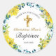 Sticker Rond Plutôt jaune Floral Croix or Merci Baptême