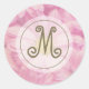 Stickers De Lettres Initiales Personnalisées En Or Plutôt Rose Joyeux. Fille fille fleurit rose fleuri initial fleuri. Superbe et mignonne avec poupée girly, fille rose rougit fleurs accentuées de jaune et blanc. Joli monogramme initial se trouve au-dessus d'un cadre blanc doré translucide. Joli Marguerite rose Personnalisé Gold Initiale Classic Sticker rond