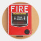 Photo d'une poignée d'alarme incendie rouge montée sur un mur en bois