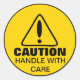 Poignée De Signes De Prudence Avec Sticker De Soins. Autocollants ronds jaunes personnalisables avec texte entièrement personnalisable "Attention" et "Handle With Care" et triangle avec feuille d'autocollants d'avertissement de point d'exclamation. Cette poignée avec autocollant d'avertissement de soin est entièrement personnalisable, ajoutez votre texte et vos images!