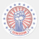 Un t-shirt pro-union avec un poing levé dans un cercle d'étoiles et rayures rouges, blanches et bleues, et avec "union" dans une bannière voûtée en bas. T-shirts, sueurs, boutons, tasses, cadeaux.