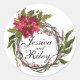 Sticker Rond Poinsettia Wreath Feuilles & Berries Monogramme