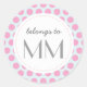 Arrière - plan motif à points bleus et roses avec un étiquette au milieu écrit "appartient à MM". Il s'agit d'un modèle de texte, qui peut être facilement modifié par votre propre texte, nom, monogramme ou balises.