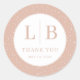 Cette autocollante de mariage présente un design minimaliste avec un fond pêche doux orné de pois blancs subtils. Le cercle central met en valeur une typographie serif élégante de couleur brun atténué, présentant les initiales "L" et "B" séparées par une ligne verticale, suivies de la phrase "MERCI". La mise en page met l'accent sur la symétrie et l'équilibre, créant une esthétique chaleureuse et raffinée parfaite pour exprimer la gratitude lors de votre événement spécial. Idéal pour ajouter une touche de sophistication aux cadeaux ou faveurs de mariage, cet autocollant transmet la sincérité et la célébration avec son style intemporel.