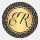 Autocollant monogrammé avec un motif à points de polka à coups de pinceau or moderne sur fond noir.