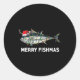 Sticker Rond Poisson de thon amusant Noël Santa Claus Xmas Pêch
