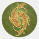 Ce symbole stylisé pour le signe zodiaque de Pisces est décoré de lignes complexes et de motifs de points. La conception symétrique comprend deux poissons élaborés qui s'intègrent dans un motif Yin yang. Cet autocollant jaune et vert est une belle et élégante façon de montrer votre signe astrologique.