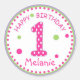 Sticker Rond Poka rose chaud point heureux anniversaire numéro
