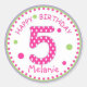 Sticker Rond Poka rose chaud point heureux anniversaire numéro